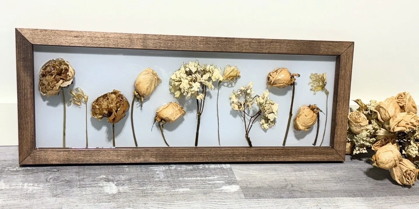 Each preserved floral piece is unique and no two pieces will be alike. My artwork is handmade by me. You may find small surface imperfections, such as micro-bubbles, dust and or uneven edges. As with all natural elements + handmade items not all preservations will produce the same results. These elements often bring forth a raw and untamed beauty.